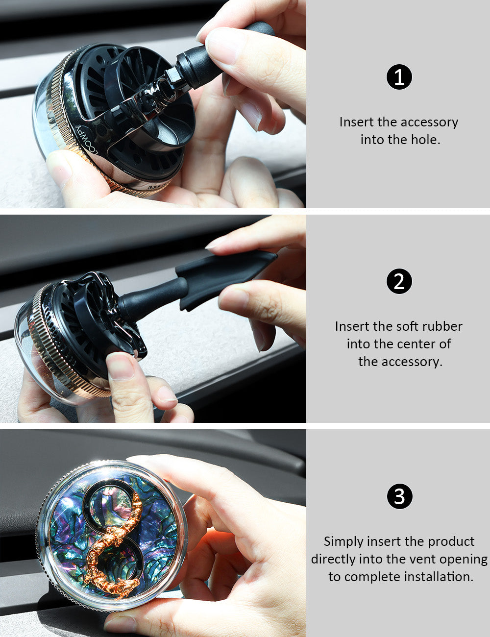 Designed specifically for Tesla Model 3/Y! Installs freely on Tesla air vents. Rotates with airflow from the AC system, using the airflow to diffuse fragrance throughout the entire cabin.