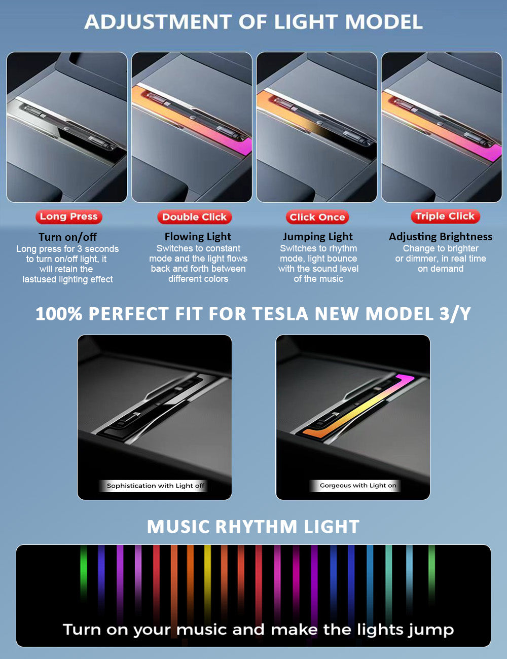 Your new Tesla has been on the road for a while now. Have you found wireless charging difficult to meet the needs of your electronic devices? Our product is specially designed for you, offering faster and safer charging along with an engaging ambient lighting experience.