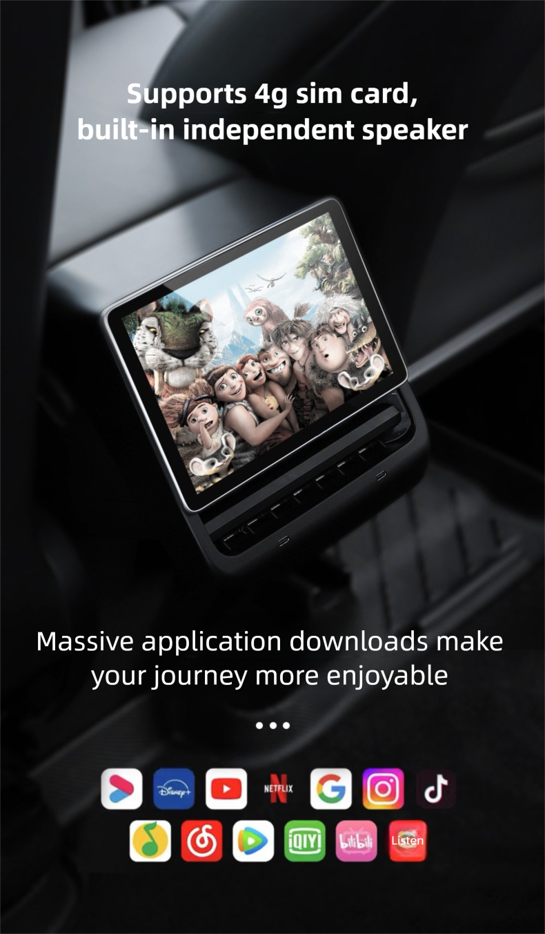 This entertainment screen keeps passengers entertained with wireless joystick and touchscreen controls, supporting apps like Netflix, Disney+, YouTube, and TikTok — simply insert a 4G SIM card for instant internet access and seamless streaming. Perfect for long trips, it lets kids and adults enjoy games, videos, and shows, with full app download support to customize the experience and make every journey feel shorter.