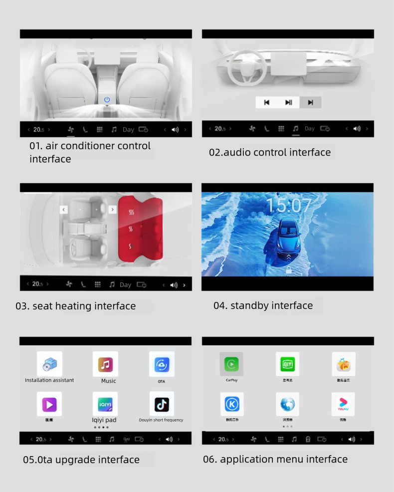 Support cell phone screen casting, seat adjustment, air conditioning adjustment and many other functions.